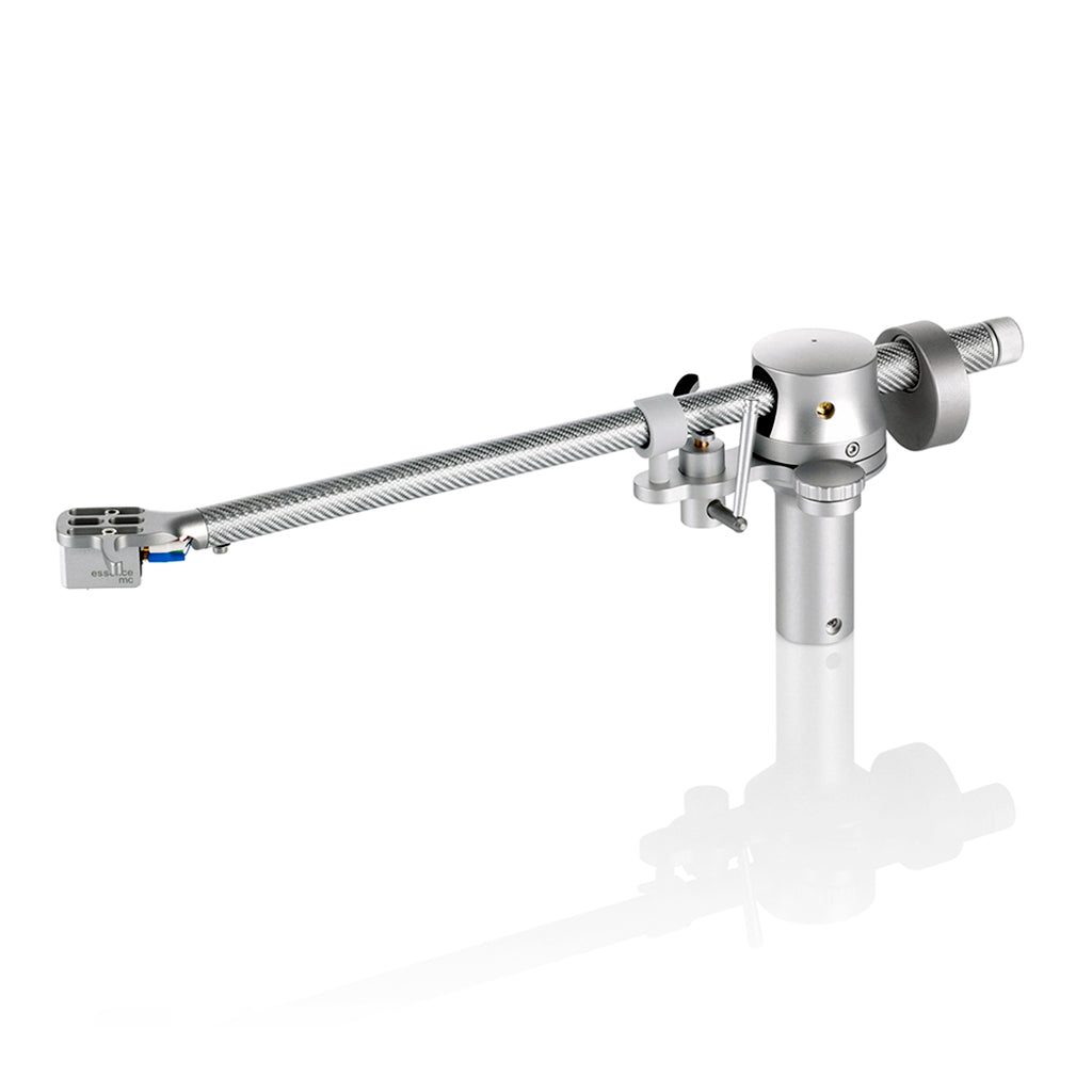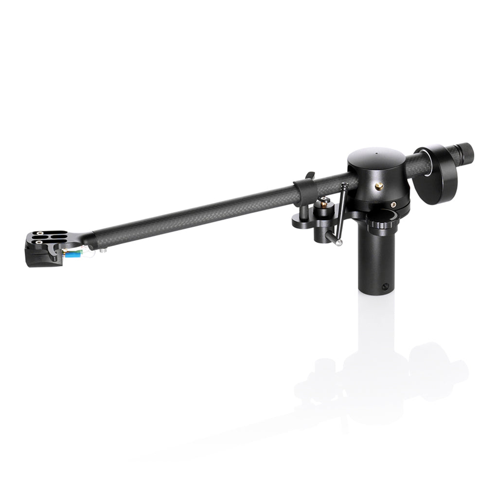 CONSTRUCTION DETAILS Radial tonearm with horizontal sapphire bearing and vertically ball bearing. Fine adjustment of the azimuth. Available in black or silver carbon with matching aluminium parts.