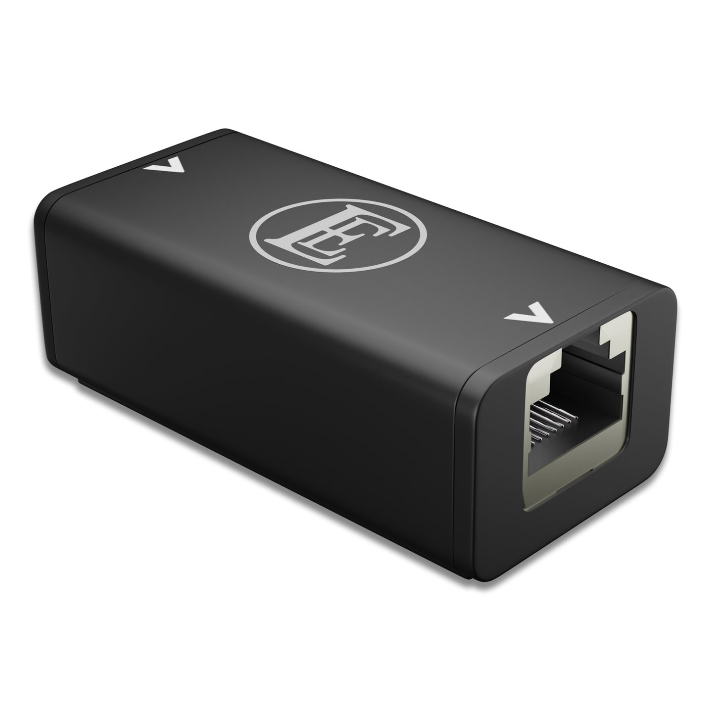 The EE1 network noise isolator is a passive filter that take noise on your data cables and converts it to heat. It is designed to sit discreetly between two Ethernet cables, and can drastically reduce noise whilst allowing digital signals to pass unhindered.