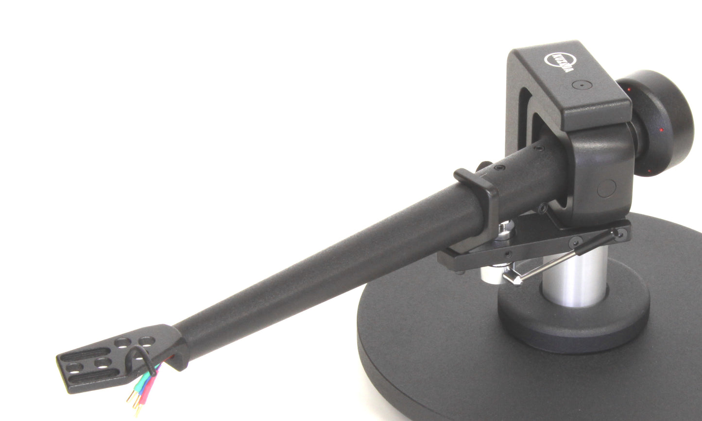 A 9" medium mass tonearm with upgraded bearings and a damped conical tube