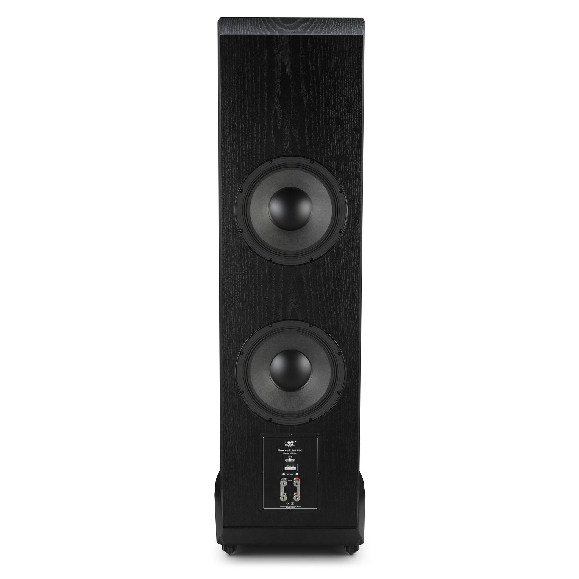 The SourcePoint V10 is configured around a custom-tooled 10" concentric driver and a 1.25" soft-dome tweeter centered within the woofer cone. As part of this point-source system, the cone acts as a waveguide for the tweeter to both match directivities and maximize efficiency. The 10" paper-cone driver, with its corrugated surround, offers improved linear excursion and minimizes diffraction effects on the tweeter's wave expansion. This is supported by two 10" woofers and two 10" passive radiators to produce an extremely linear, low-distortion drive force without introducing port noise.