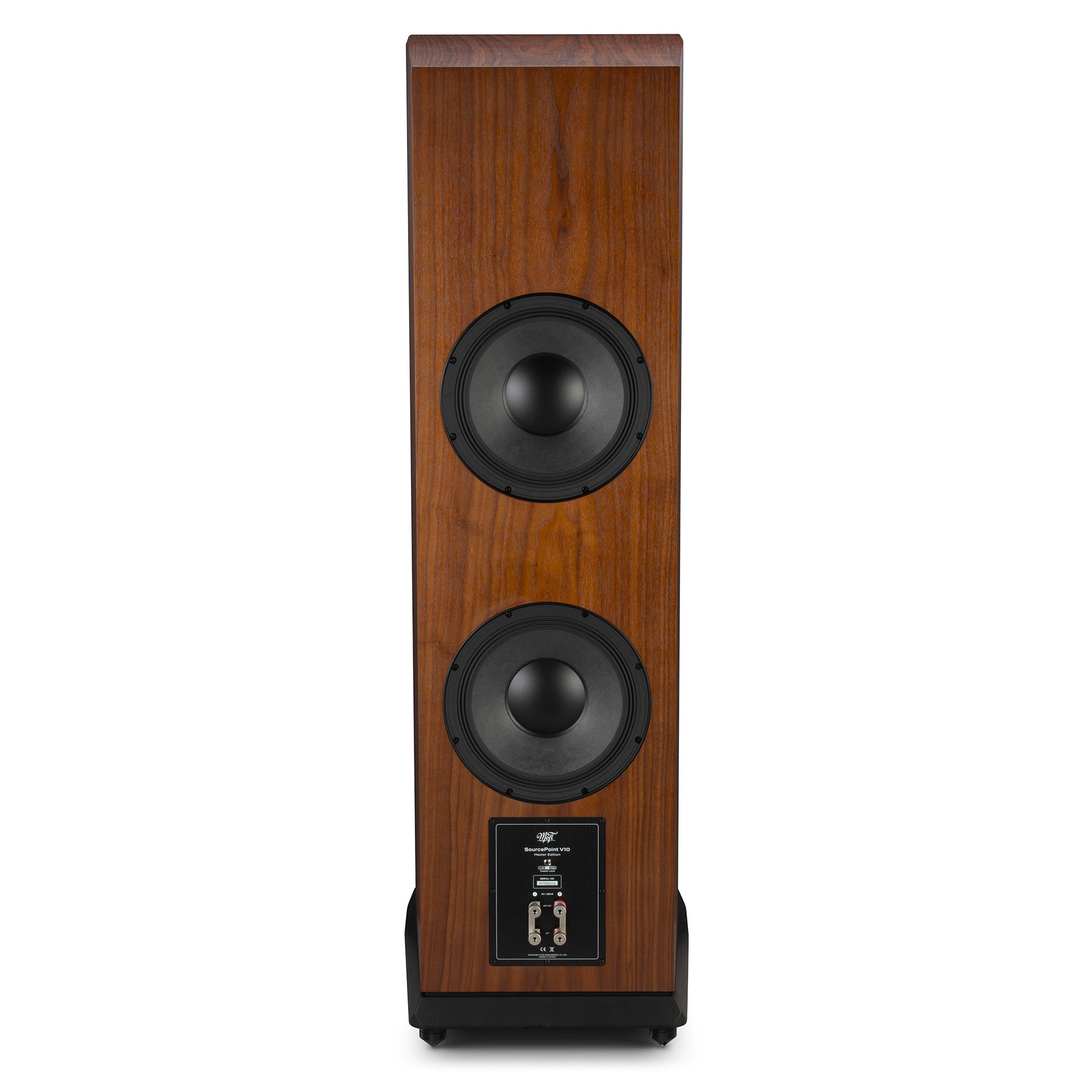Rockstar audio engineer Andrew Jones is well known from his days at KEF, Infinity, TAD, Pioneer, and ELAC. Now he's with MoFi Electronics and has been working out of a studio in LA, developing the SourcePoint series. The brief was to create a mid-century modern design with a nod to the big-woofer studio systems of the seventies. Deep, tight bass was to be central to the sound. The SourcePoints are unusual in that they use a concentric point-source design. As Andrew says, "There is clearly a simplicity in a two-way. I've put a lot of work into optimizing the drive motor [resulting in a manageable and predictable excursion], and this plays a large part in the resultant performance." With the V10, that philosophy extends into a floorstanding configuration with additional bass capability.