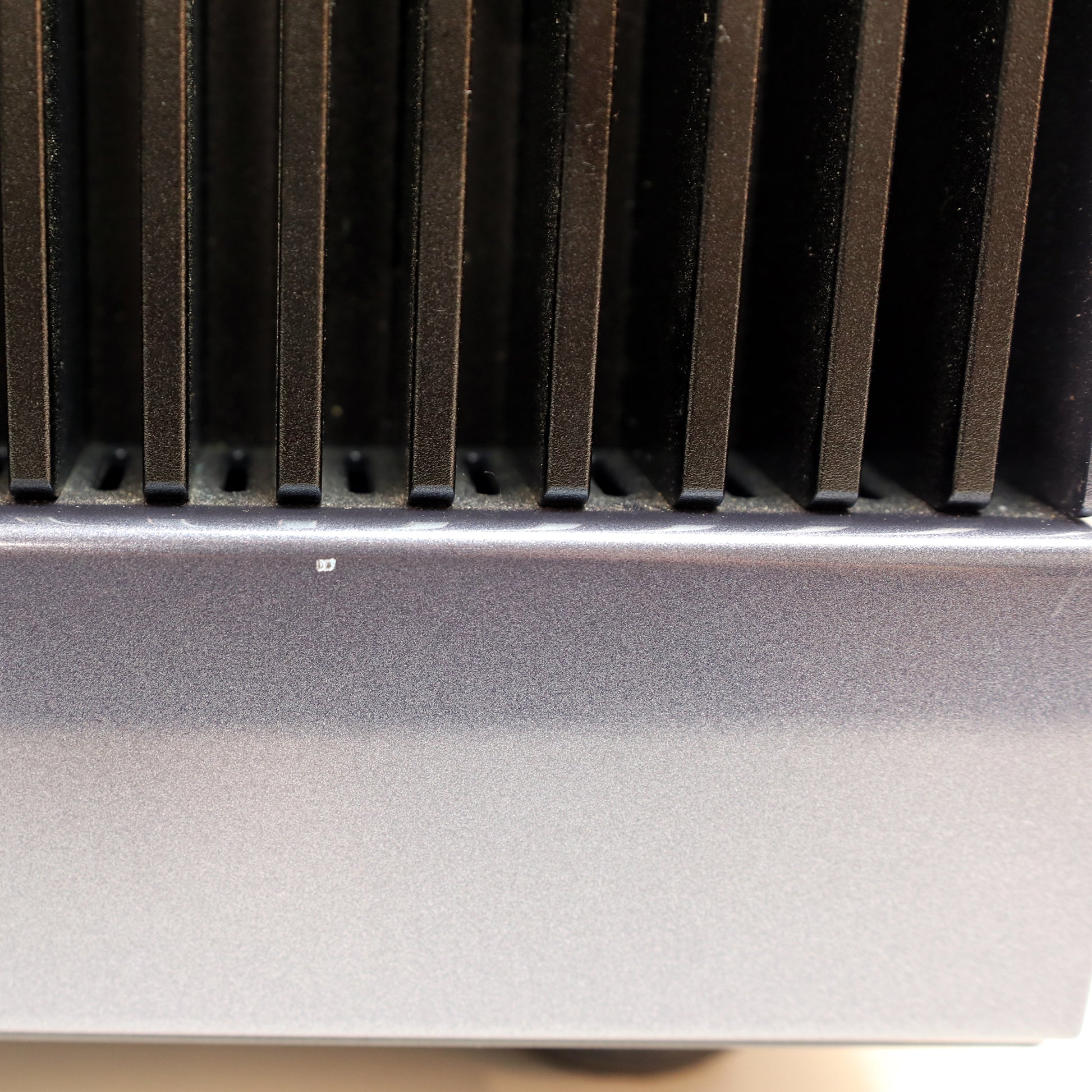 Tests perfectly. Your chance to get a discount on a non-discountable new product with small cosmetic issues, see pics. Comes with remote, power cord, owner's manual, and original packaging.