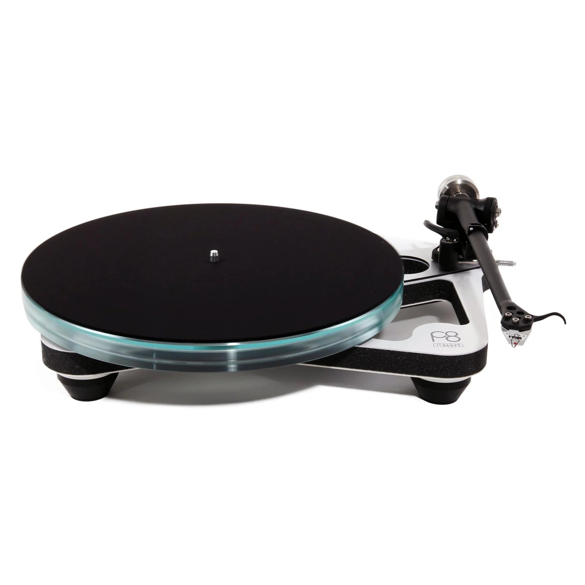 The Planar 8 uses a three piece laminated glass platter which is the result of collaboration with a British glass engineering company. This brand new platter is constructed from two different high quality Pilkington glasses. As a general rule the only part of a turntable that requires extra mass is the turntable platter, in order to achieve constant rotational speed. However, a heavier platter creates more problems for the main bearing design so again an ideal compromise creates the best solution. Practically this means keeping as much of the mass to the outside rim of the glass platter to create more flywheel effect but keeping the inside of the platter as light as possible without sacrificing stiffness.