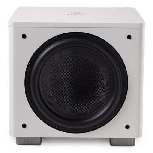 REL avoids electronic gimmickry (apps, DSP, EQ) and chooses instead solid build and engineering. The cabinets are correctly matched to drivers, solidly braced, and beautifully finished. A new amp design effortlessly delivers 500 W to an all-new CarbonGlas™ 12” driver. A new black lacquer top plate has a subtle REL logo floating on top, and black line-grained composite for the cabinet looks both refined and powerful.