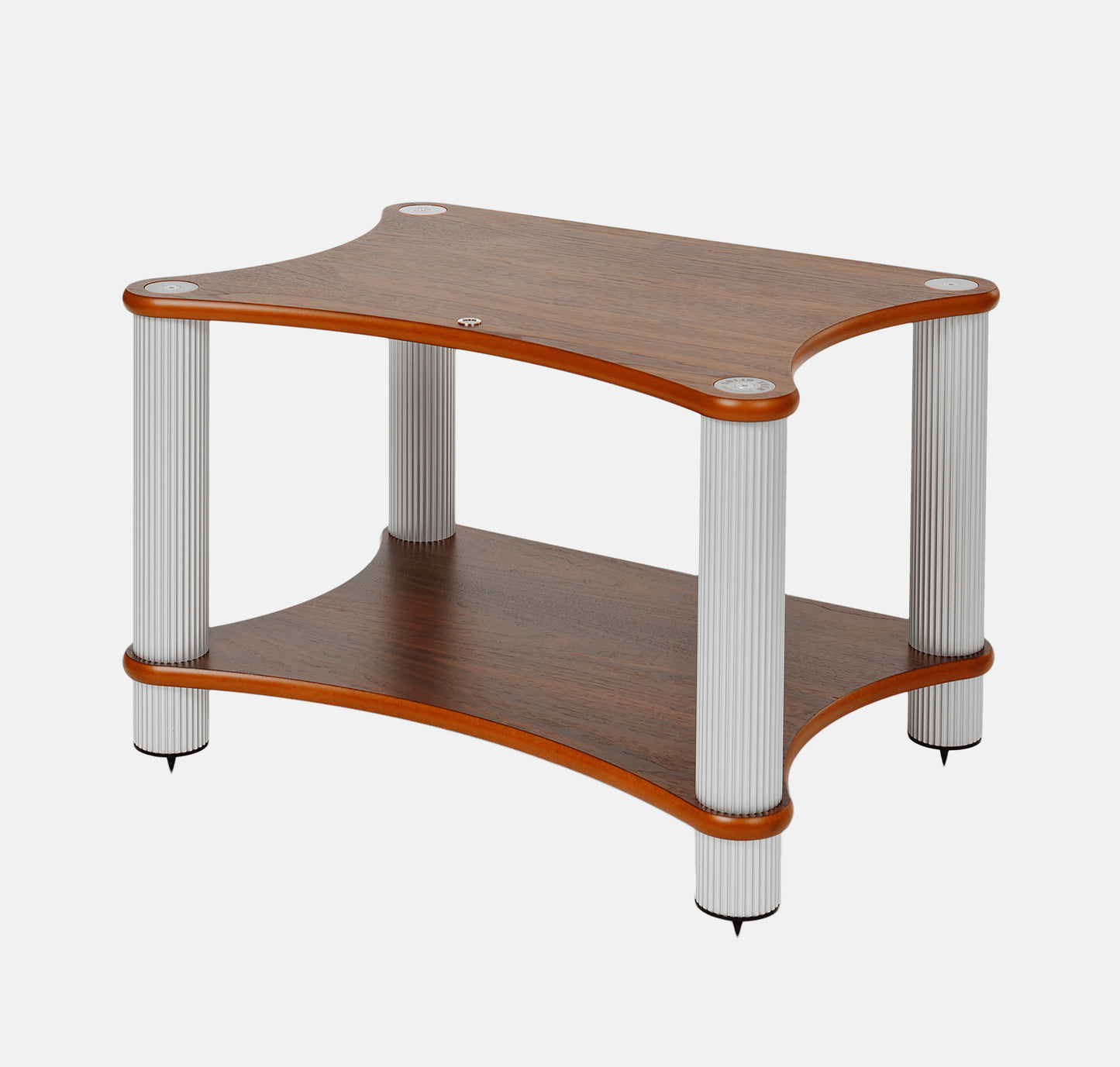 The radiused corner pillars of the Radius series are made from the finest Swedish aluminum extrusion, and beautifully anodized in a deep black or satin silver finish. The large pillars and high-density shelf use a self-stabilizing fixture that makes the rack very rigid. Extensive internal bracing provides for a favorable weight/stiffness ratio and a non-resonant design.
